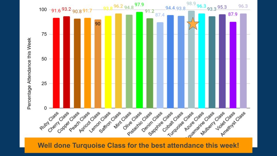 We have noticed that attendance regularly dips on Fridays. Please be assured that Fridays are full learning days, with a complete timetable of lessons, just like every other day of the week. Your support in ensuring children attend school every day really does make a difference.