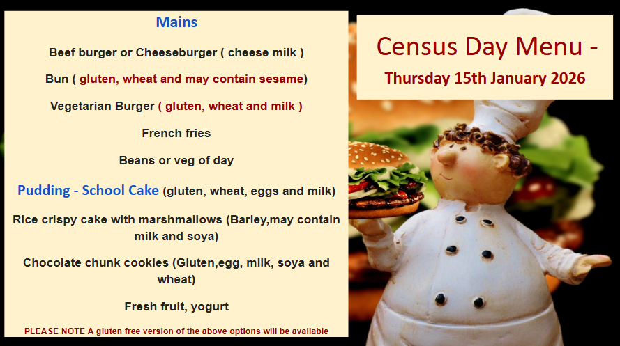 Thursday 15th January is Census Day. Essentially, the greater the number of students in school having a school dinner, the greater our school funding will be for the year ahead.